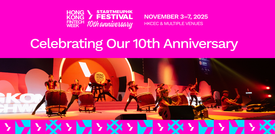 Hong Kong FinTech Week and StartmeupHK Festival 2025 are partnering to mark their 10th anniversary, from 3-7 November 2025, bringing together 37,000+ attendees from over 100 economies, creating a broader platform that showcases all aspects of technology and business innovation. The Main Conference, to be held on 3-4 November at the Hong Kong Convention & Exhibition Centre, is complemented by a week-long series of community events.